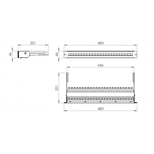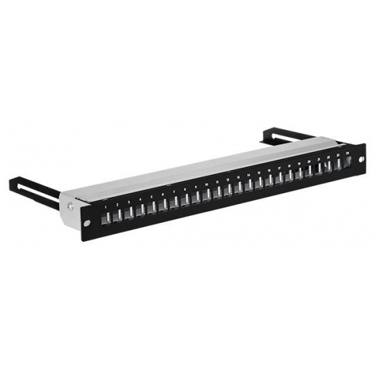 19" modulárny tienený patch panel LEXI-Net 24portový, čierny, rozťahovací