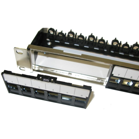 19" modulární stíněný patch panel XtendLan 24port, 4x demontovatelný modul, černý