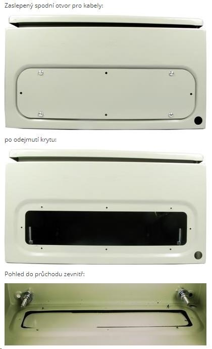 - V spodnej časti skrinky je káblový priechod 303 x 113 mm s odnímateľným krytom