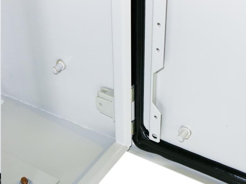 Vonkajší nástenný rozvádzač vyrobený z valcovanej ocele s hrúbkou 1,5 mm. Trojvrstvová povrchová úprava. Uskutočnenie: dvere - plné, otvárateľné o 110°, zameniteľný smer otvárania, tesnenie z penového polyuretánu zadný kryt - plný bočný kryt - plný horný kryt - plný