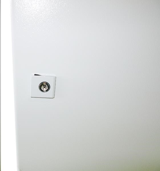 Vonkajší nástenný rozvádzač vyrobený z válcovanej ocele s hrúbkou 1,5 mm. Trojvrstvová povrchová úprava. Vlastnosti: dvere - plné, otvárateľné o 110°, výmena smeru otvárania, tesnenie z penového polyuretánu zadný kryt - plný bočný kryt - plný horný kryt - plný