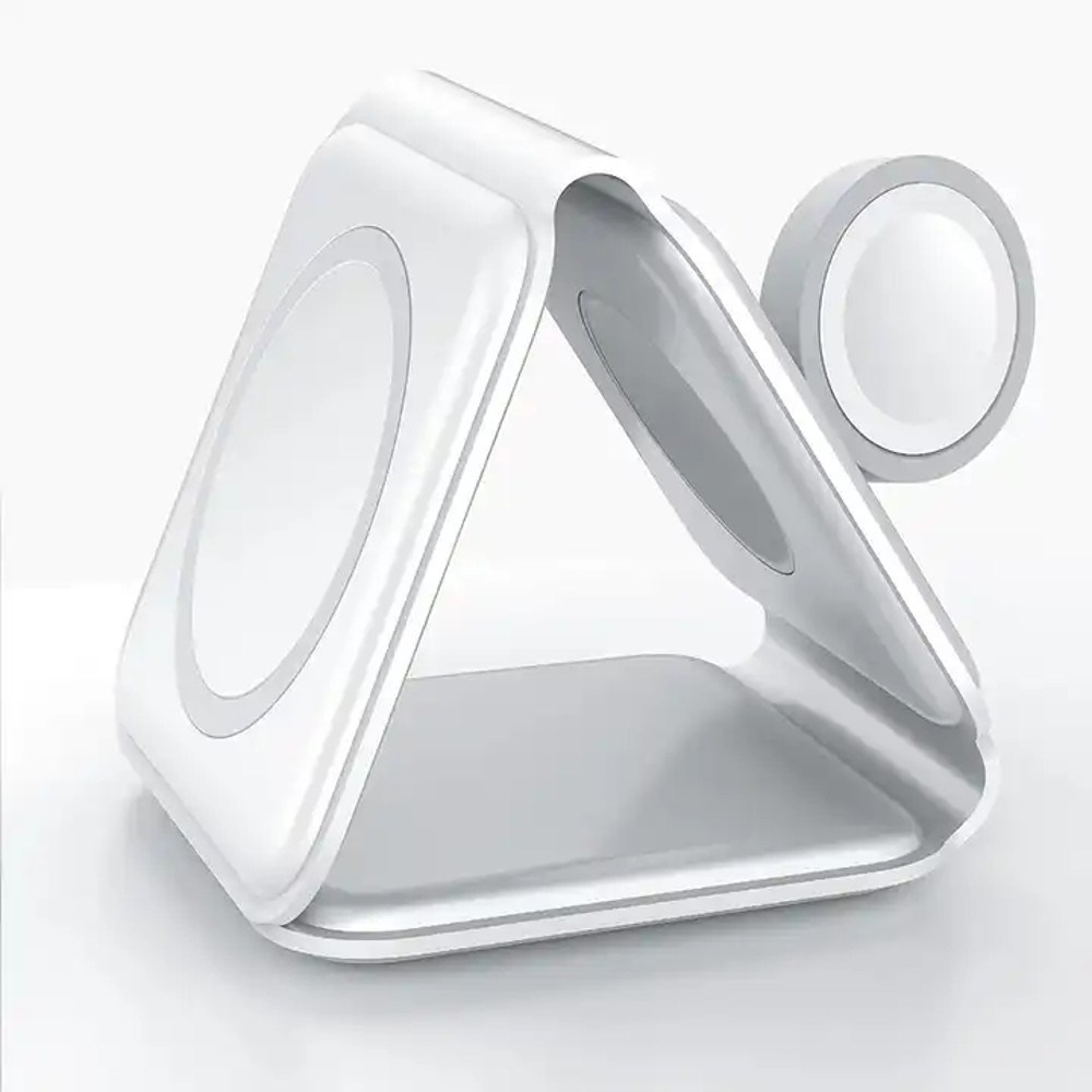 Vysoko kvalitná výkonná bezdrôtová skladacia 3 v 1 s podporou Apple MagSafe, iWatch, AirPods, ale aj väčšiny telefónov alebo príslušenstva iných značiek podporujúcich bezdrôtové QI nabíjanie. Unikátne skladacie riešenie vám umožňuje zvoliť si použitie iba ako podložku pre jedno zariadenie, alebo stojan či nabíjačku rozložíte a nabíjate až tri zariadenia. Nabíjačku je možné opäť jednoducho zložiť do malej kompaktné podoby a v prípade potreby vložiť do vrecka a jednoducho vziať kamkoľvek budete potrebovať.