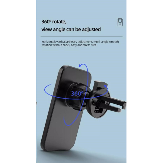 Vysoko kvalitná výkonná bezdrôtová magnetická nabíjačka do auta s podporou Apple MagSafe. Vybavená dvoma držiakmi, môžete zvoliť buď variant do ventilácie, alebo otočný a vysúvací držiak s prísavkou.