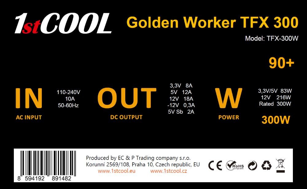 1stCOOL Zdroj Golden Worker TFX 300 88+, 300W, TFX, černá