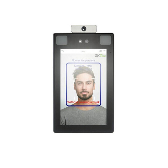 IP prístupová jednotka s biometrickým snímačom tváre, snímaním dlane, detekciou telesnej teploty a rúška, kapacita 30 000 tvárí, 5 000 dlaní, 1 mil. událostí, komunikácia s PC cez TCP/IP, zvuková a LED signalizácia, 1x NO/NC relé zámku, 1x vstup dverného kontaktu, 1x relé výstup alarmu, 1x relé vstup odchodového tlačidla, Wiegand26 vstup/výstup pre pripojenie podružnej čítačky, napájanie 12 V DC (zdroj je súčasťou balenia), rozmery 227 x 143 x 26 mm, IP 68, IK 04, interiérové použitie, zariadenie je kompatibilné so softvérom ZKBioAccess0