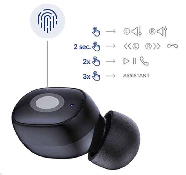 3mk bezdrátová stereo sluchátka FlowBuds, nabíjecí pouzdro, černá