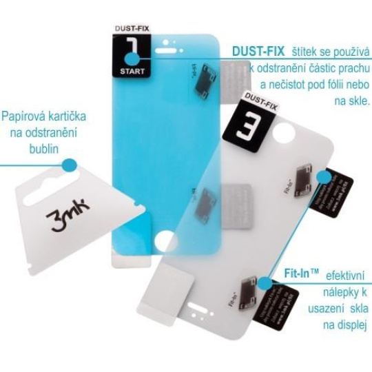 - Použité technológie - 2,5D zaoblené hrany, oleofóbny povlak, lepidlo Inviscid-Sil™, vrstva fólie Anti-Crash, polohovacie pásky Fit-In™, pásky Dust-Fix™