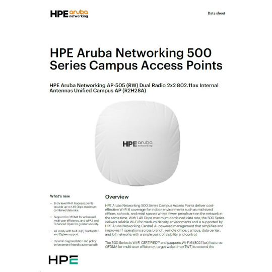 Odkaz na web výrobcu: https://www.arubanetworks.com/assets/ds/DS_AP500Series.pdf