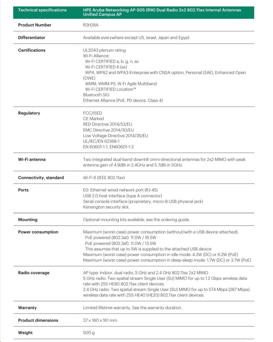 Odkaz na web výrobcu: https://www.arubanetworks.com/assets/ds/DS_AP500Series.pdf