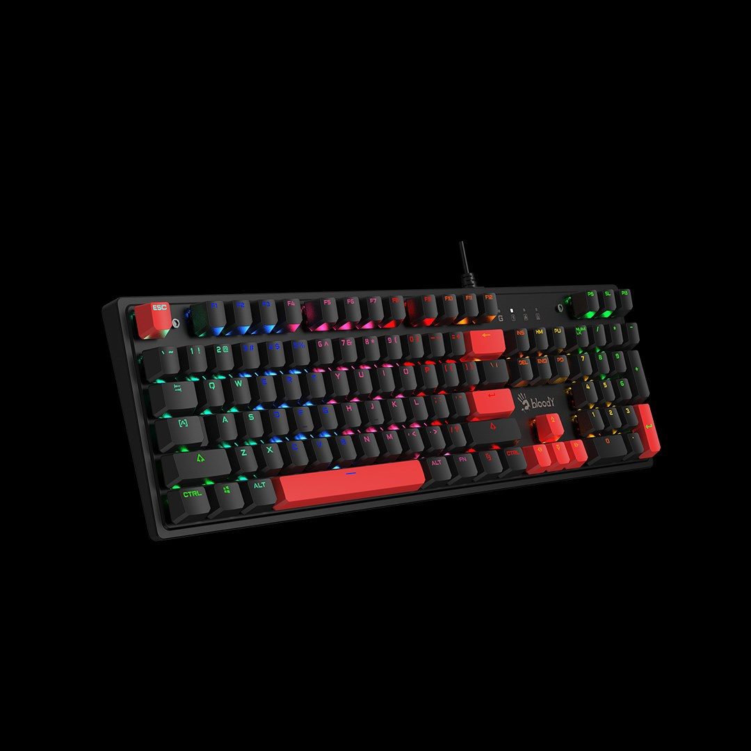 A4tech Bloody Klávesnice S510R, herní klávesnice, mechanická, drátová, Red Switch, CZ/SK, Černá