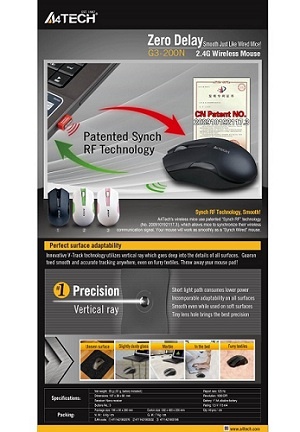 A4tech G3-200N, V-Track, bezdrôtová optická myš, 2.4GHz, dosah 10 m, čierna farba