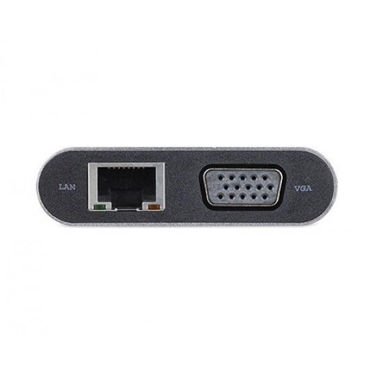 Kompatibilita - Windows® 10, Mac OS®, Chromebook Rozhranie - USB Type-C Hmotnosť a rozmery - 115 (Š) x 62 (H) x 16,5 (V) mm, 98 g Rýchlosť - až 5 Gb/s Typ C - 20V/3V Zobrazenie HDMI - 3840x2160 @30Hz VGA - 1920x1200 @60Hz VGA + HDMI podporuje 1080P Ethernet - 10/100/1000 Mb/s USB 3.0 3x Audio - 3,5 mm Stereo Audio + mikrofón Čítačka kariet SD a sloty TF..
