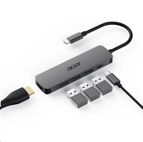 Acer 5IN1 Type- C dongle,HDMI,USB3.0,USB-C,100W PD,Dark Silver