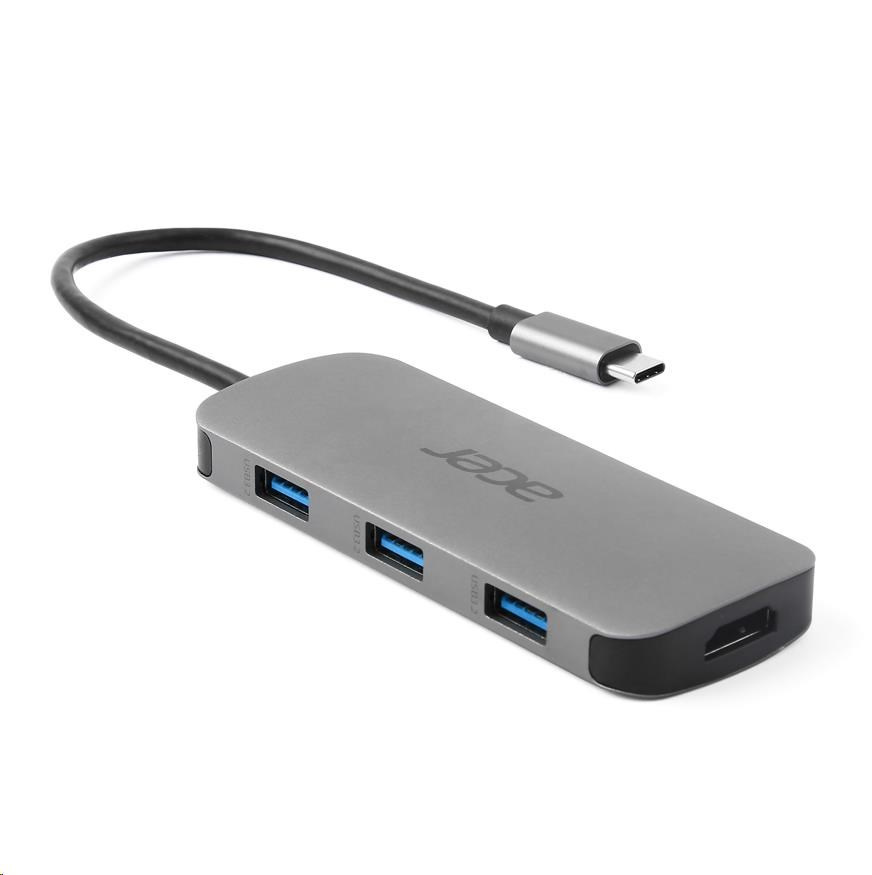 ACER Dokovací stanice 7in1 Type-C dongle, 1x HDMI, 3x USB-A 3.2 Gen1, 1x SD 3.0, 1x microSD, 1x USB-C, silver