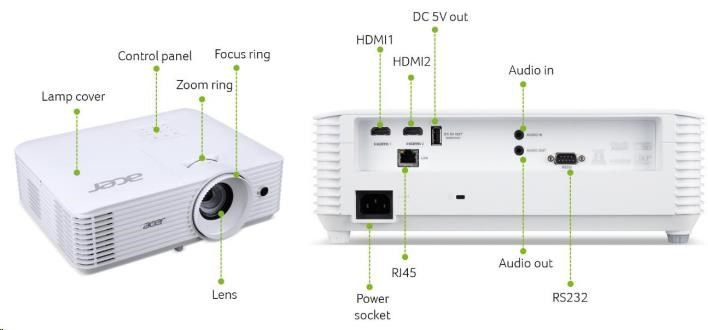 ACER Projektor P5550, DLP 3D, 1080p (1920x1080), 5200 ANSI, 15 000:1, VGA, HDMI(MHL), HDMI, RJ45, repro 1x10W, 2.73Kg, L