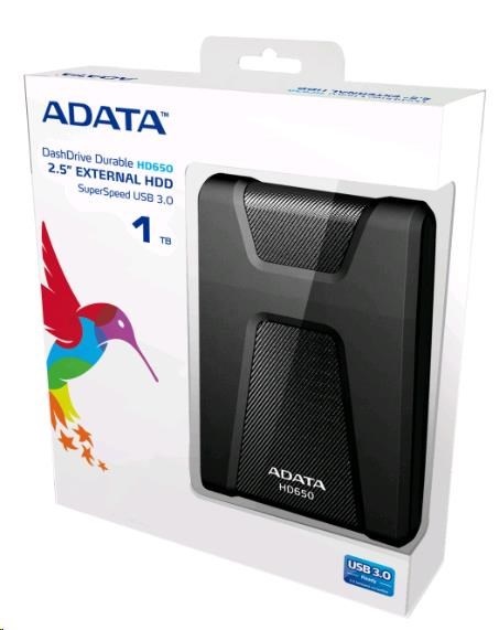 Externý pevný disk ADATA 1TB 2,5" USB 3.1 DashDrive Durable HD650, čierny (gumový, odolný voči nárazom)