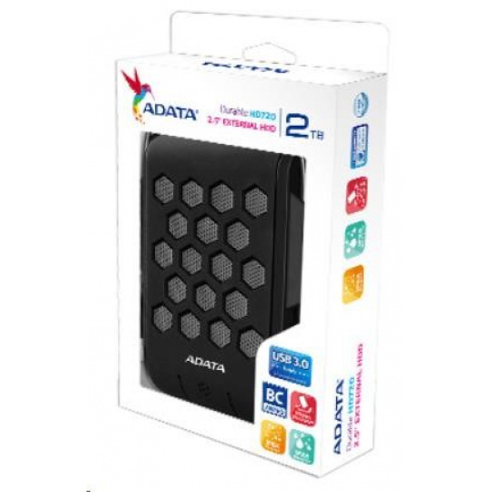 Externý pevný disk ADATA 1TB 2,5" USB 3.1, DashDrive™ Durable HD720, G-senzor, čierny, (gumový, odolný voči vode/nárazom)