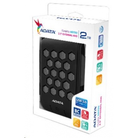 Externý pevný disk ADATA 2TB 2,5" USB 3.1, DashDrive™ Durable HD720, G-senzor, modrý, (gumový, odolný voči vode/nárazom)