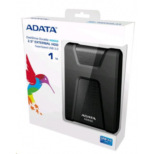 Externý pevný disk ADATA 2TB 2,5" USB 3.1 DashDrive Durable HD650, čierny (gumový, odolný voči nárazom)