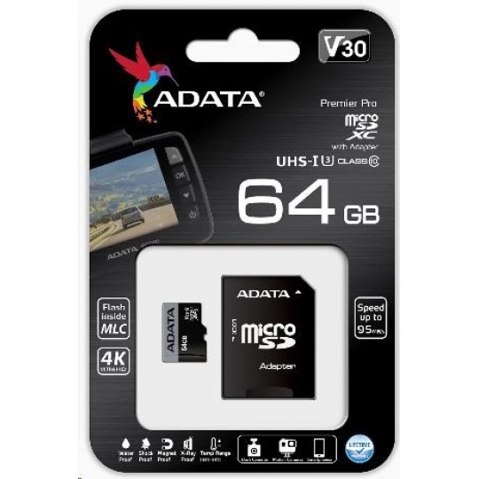 ADATA MicroSDXC karta 128GB Premier Pro UHS-I V30S (R:100/W:80 MB/s) + SD adaptér