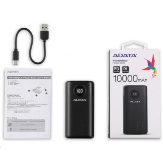 ADATA PowerBank AP10000 - externá batéria pre mobilný telefón/tablet 10000mAh, čierna (37Wh) USB-C