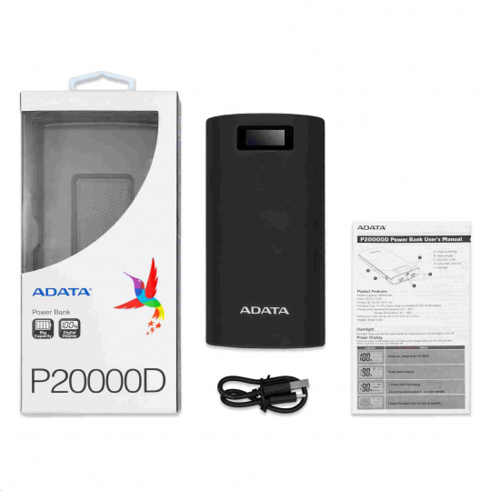 ADATA PowerBank P20000QCD - externá batéria pre mobilný telefón/tablet 20000mAh, 2,1A, čierna (74Wh)