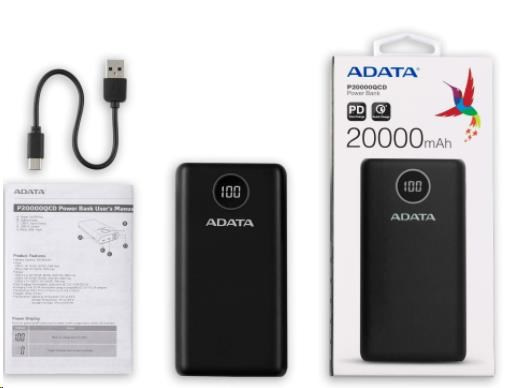 Zrýchlite si čakanie s powerbankou ADATA P20000QCD! S modelom P20000QCD nabijte svoje zariadenia ako dup! Táto powerbanka je vybavená veľkou batériou 20 000 mAh, má kompaktný formát a podporuje štandardy Qualcomm QC 3.0 a USB Power Delivery 3.0.