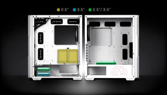 Podporuje až 2× 2,5” HDD/SSD a 2× 3,5” HDD a 2,5”/3,5” Combo Drive úložné miesta.