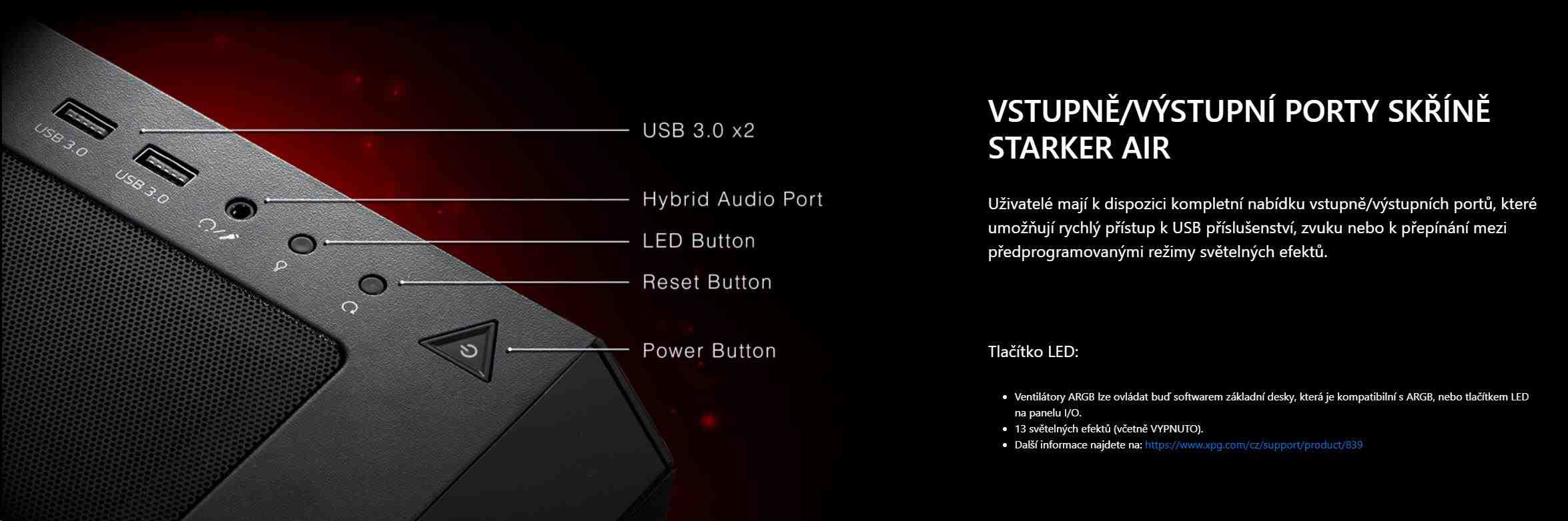 ADATA XPG case STARKER AIR Mid-Tower, bez zdroje, 1x 120mm + 1x 120mm ARGB, Černá