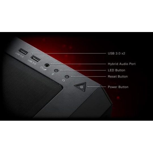 Hotový set I/O portov pre používateľov k USB zariadeniam, zvuku alebo na prepínanie prednastavených RGB módov.