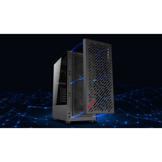 XPG VALOR AIR je kompaktné ATX mid-tower šasi s dizajnom predného panela Streamline-Carving. Magnetický predný panel a filter sú odnímateľné, vhodné na rýchle čistenie. Bočný panel z 3mm tvrdeného skla slúži ako spôsob, ako si vychutnať pohľad cez tvrdené sklo.