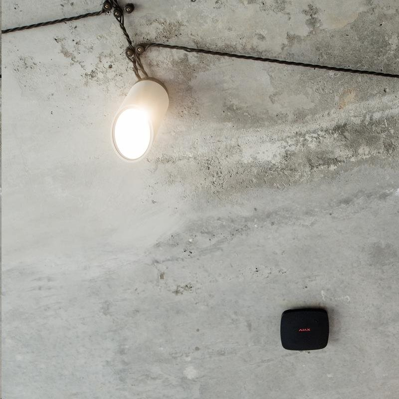 Bezdrôtová technológia Jeweller umožňuje komunikáciu s Ajax Hubom až na vzdialenosť 1 300 m v otvorenom priestore alebo cez niekoľko poschodí výškovej budovy.