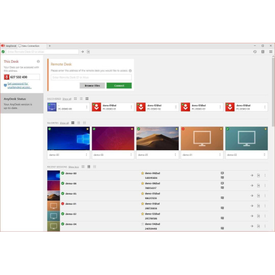- 100 licencovaných používateľov v tíme - 100 ľudí z vášho tímu sa bude môcť prihlásiť do svojho vlastného klienta AnyDesk.