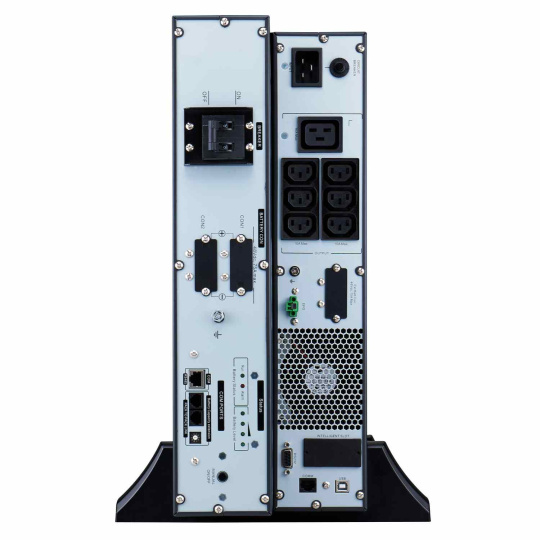 | Dodávka obsahuje | Základný kábel pre komunikáciu záložného zdroja cez rozhranie RS-232, Kábel USB, Kábel RJ45, Kábel RJ11, Napájací kábel C13-C14, Skriňové inštalačné konzoly, Skriňové podperné lišty, Stabilizačné nohy, Užívateľská príručka, Bezpečnostná príručka, Battery cable |