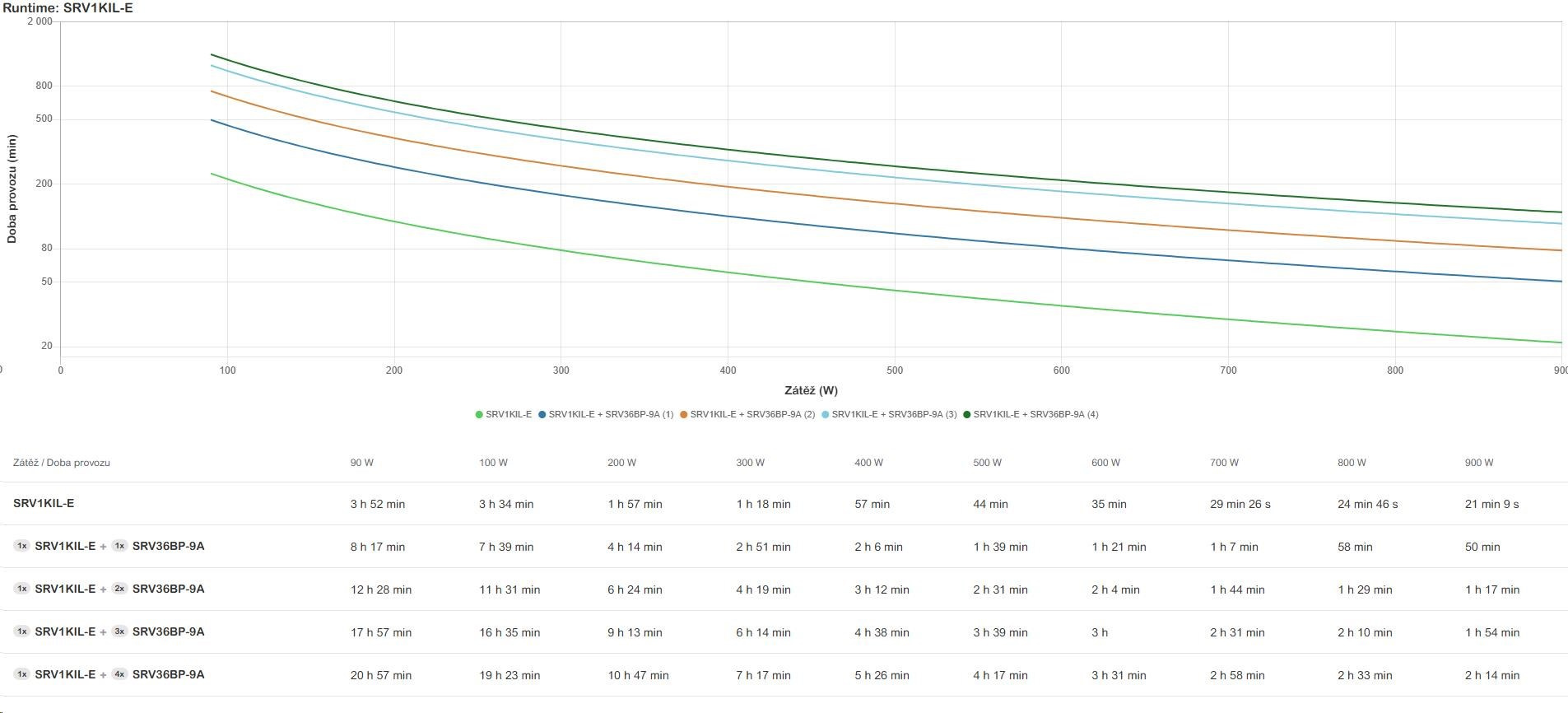 | Doba prevádzky pri zaťažení WMin.–max.: 90-900 W | 21 minút 9 sekúnd |