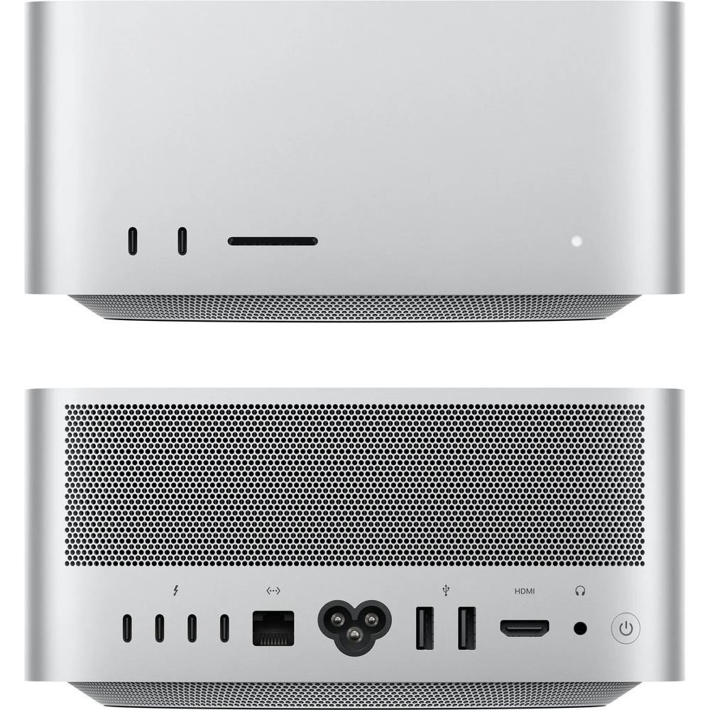 Vo štvorcovom tele Macu Studio s rozmermi 19,7 × 19,7 cm sa ukrýva chladicí systém, ktorý čipu M4 Max alebo M3 Ultra umožňuje zvládať najnáročnejšie úlohy neuveriteľnou rýchlosťou. Aj pri maximálnom zaťažení je Mac Studio úplne tichý, takže ťa pri práci nikdy neruší.