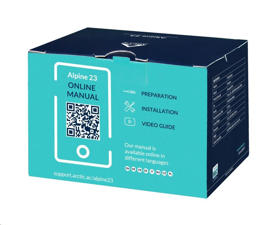 - Široký rozsah otáčok - Alpine 23 je vybavený novou technológiou motora s veľmi širokým rozsahom otáčok riadeným PWM. Vďaka tomu je hladina hluku minimálna a zároveň je zaručený maximálny chladiaci výkon v prípade potreby.