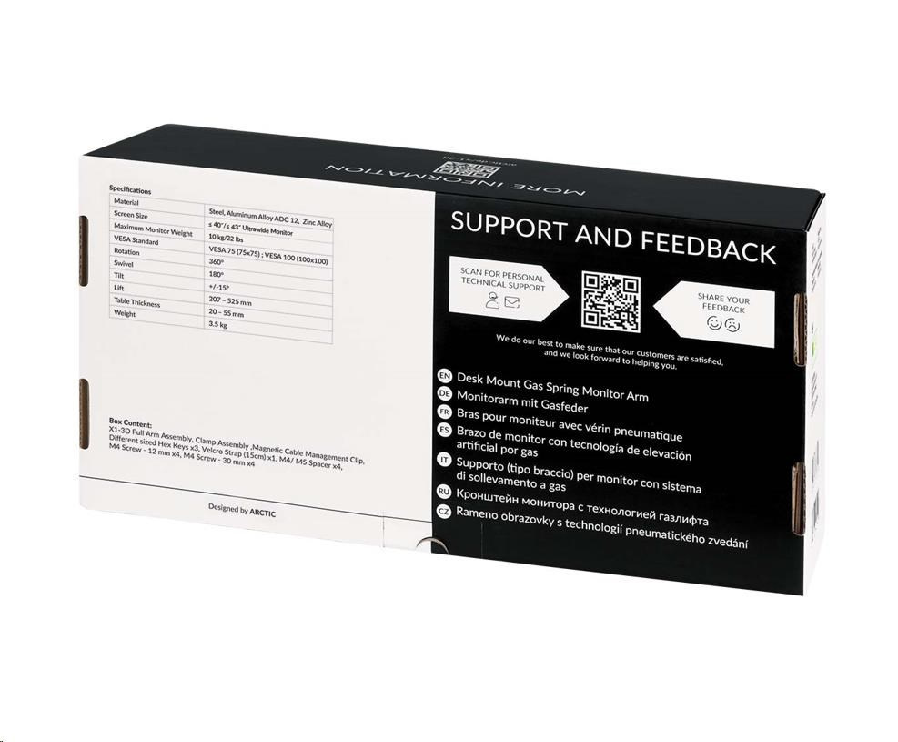 Držiak monitora ARCTIC X1-3D, oceľ, matná čierna