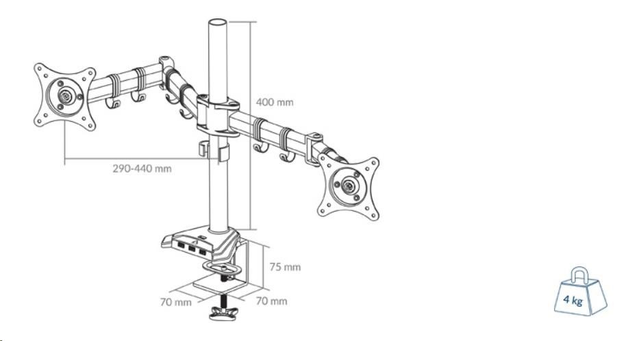 Maximálna hmotnosť monitora: 15 kg (33 libier) na jeden držiak