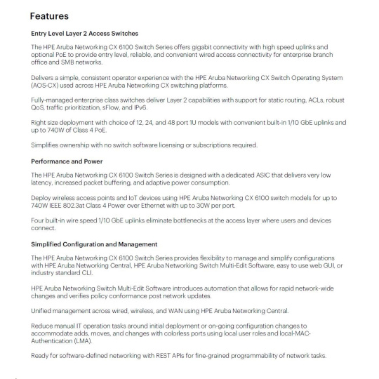HPE Aruba CX 6100 Switch Specifications
