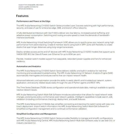 | HPE Aruba Networking CX 6200F 24G 4SFP+ Switch (JL724A) | ||