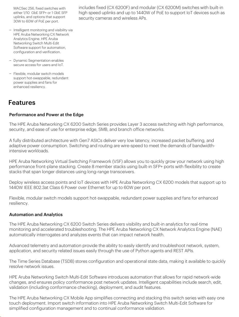 HPE Aruba Networking CX 6200F 24G Class4 PoE 4SFP+ 370W Switch JL725A RENEW