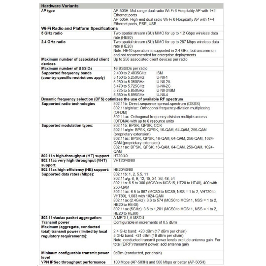 Aruba AP-503H (RW) Dual-radio 802.11ax 2x2 Unified Hospitality AP with 1+2 Ethernet R3V36AR RENEW.
