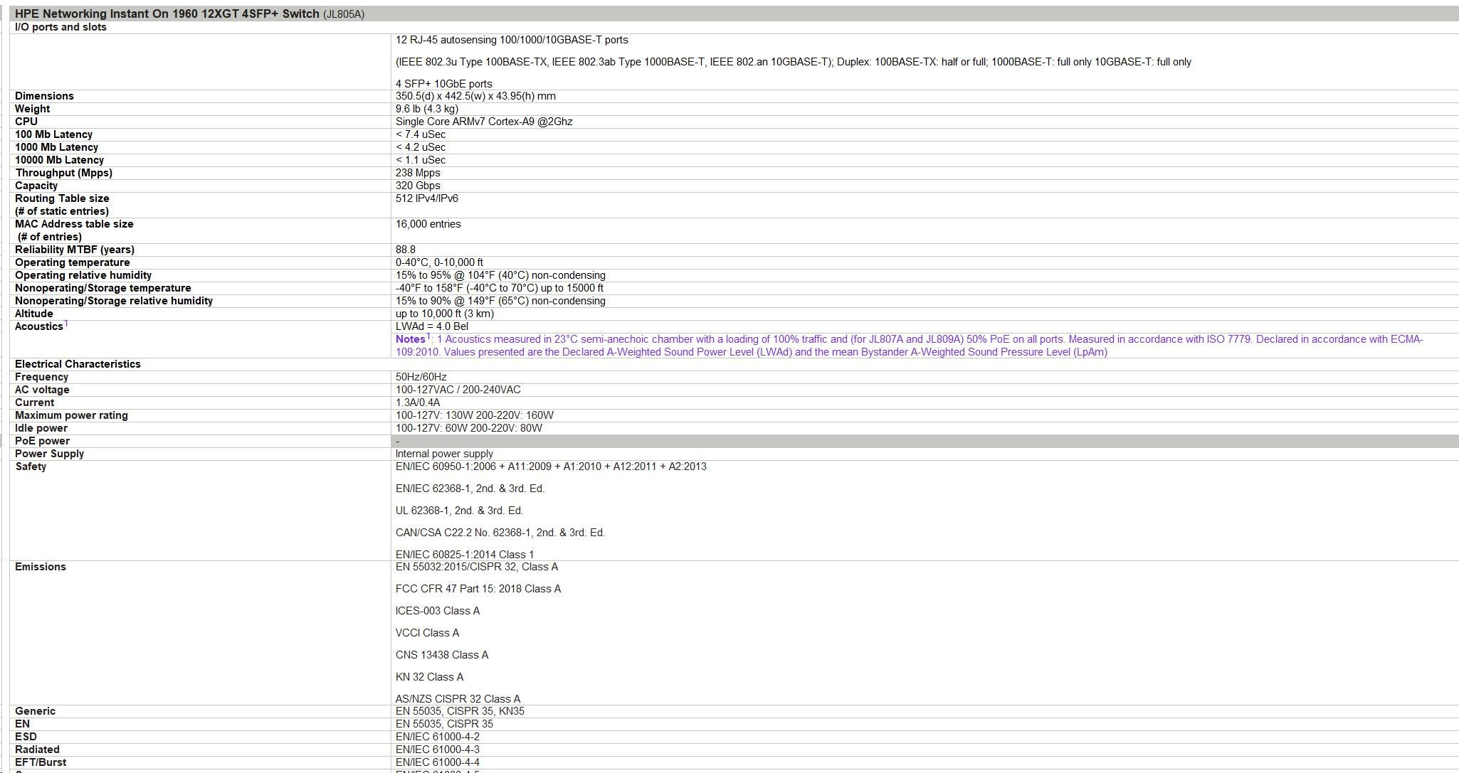 Operating temperature 0-40°C, 0-10,000 ft