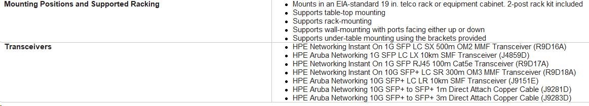 Device Management: Aruba Instant On Cloud; Web browser; SNMP Manager