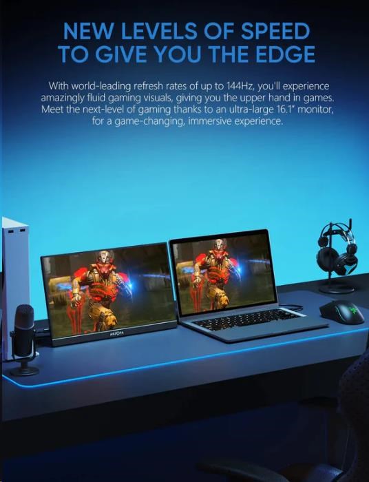 Monitor Arzopa Z1FC nabízí působivou úhlopříčku 16,1 palce podpořenou obnovovací frekvencí 144 Hz, která zaručuje plynulý obraz i v těch nejdynamičtějších scénách. Díky jasu 250 cd/m2 a širokému barevnému gamutu 100 % sRGB se obraz vyznačuje výjimečnou hloubkou a intenzitou barev. Vysoký kontrastní poměr 1200:1 a paleta 16,7 milionu barev (8 bitů) navíc zajišťují ostrý a detailní obraz.