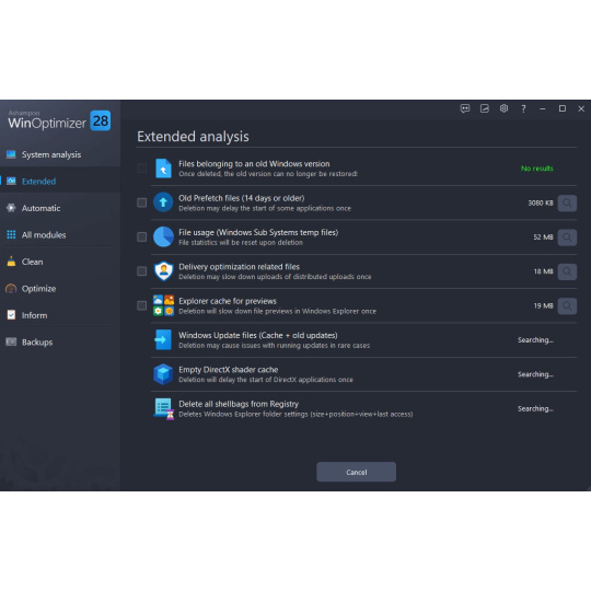 S novým a rozšíreným hlbokým čistením vstupuje hon na nepotrebné súbory do novej fázy - a problémy so súkromím a zobrazením je teraz tiež možné ľahko vyriešiť! Zbavte sa starých verzií systému Windows, záloh aktualizácií systému Windows a štatistík používania systému Windows. Problémy s zobrazením vo hrách vyriešite vyprázdnením cache shaderov DirectX a pomalý Prieskumník Windows zrýchlite vymazaním cache náhľadov. Získate pritom tiež veľa miesta na pevnom disku.
