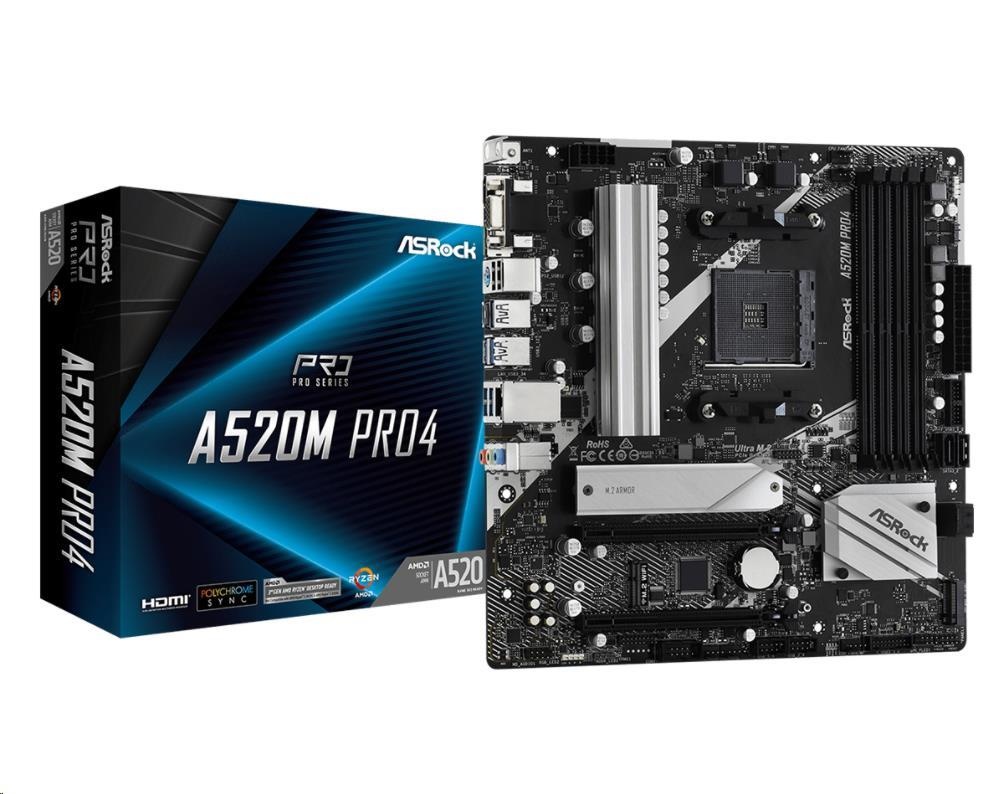 ASRock MB Sc AM4 A520M PRO4, AMD A520, 4xDDR4, HDMI, DP