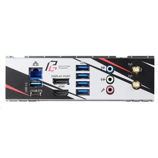 | Vstupy/výstupy na zadnom paneli | - 2 x porty antény - 1 x port HDMI - 1 x DisplayPort 1.4 - 1 x USB 3.2 port typu A Gen2 (10 Gb/s) (podporuje ochranu proti prepätiu) - 1 x USB 3.2 Gen2 port typu C (10 Gb/s) (podporuje ochranu proti ESD) - 4 x USB 3.2 porty Gen1 (podporuje ochranu proti ESD) - 1 x port RJ-45 LAN s LED diódou (ACT/LINK LED a SPEED LED) - HD audio konektory: Line in / Predný reproduktor / Mikrofón |
