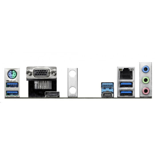 | Vstupy/výstupy na zadnom paneli | - Držiak antény - 1 x port PS/2 pre myš/klávesnicu - 1 x port D-Sub - 1 x port HDMI - 1 x USB 3.2 port typu A Gen2 (10 Gb/s) (podporuje ochranu proti prepätiu) - 1 x USB 3.2 Gen2 port typu C (10 Gb/s) (podporuje ochranu proti ESD) - 4 x USB 3.2 porty Gen1 (podporuje ochranu proti ESD) - 1 x port RJ-45 LAN s LED diódou (ACT/LINK LED a SPEED LED) - HD audio konektory: Line in / Predný reproduktor / Mikrofón |